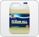 CLEAN ALL is a highly dilutable, versatile, all-purpose detergent with a fresh floral citrus bouquet, suitable for washing floors, bench tops and other hard surfaces found in kitchens, hospitals, nursing homes, motels, hotels, caravan parks, institutions, and schools.